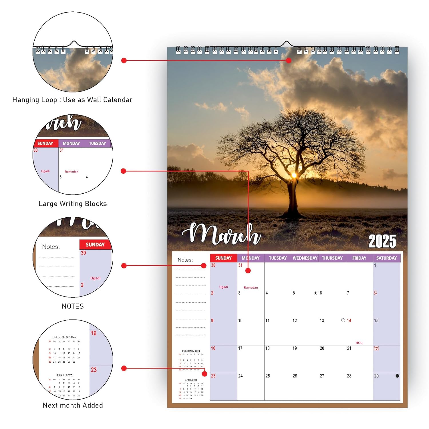 Practical Features: Hanging loop, twin-wire binding, and highlighted holidays for easy use.