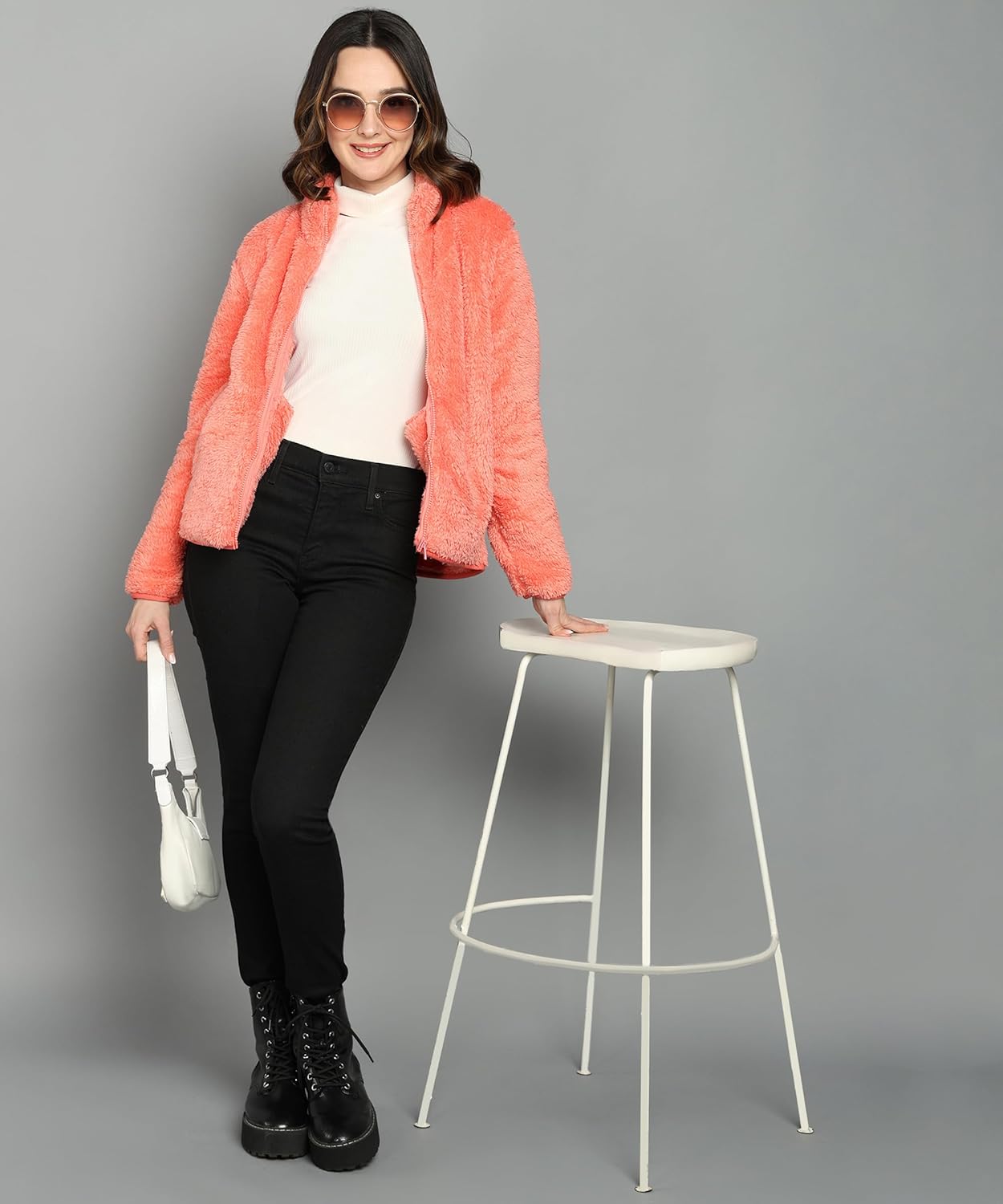 The Alan Jones Clothing Women’s Fluffy Yarn Fleece Full-Zip Winter Jacket offers ultimate warmth and comfort for the colder months. Featuring soft, long-pile fleece, it provides a lightweight yet cozy feel against the skin. The piping at the hem and cuffs keeps out cold winds, while the stand collar helps protect your neck from the chill. Designed for convenience, this jacket is machine washable for easy care and long-lasting use. Crafted from 100% polyester, it combines style, warmth, and practicality to make it your go-to jacket for winter outings.