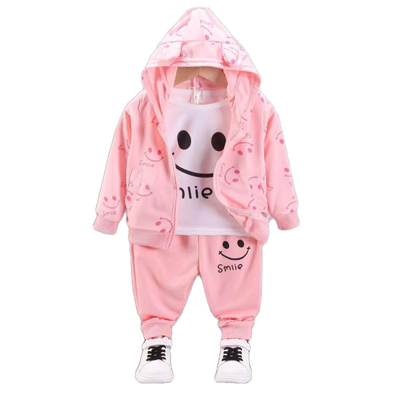 Keep your little girl cosy and stylish in this adorable 3-piece winter clothing set. The set includes a t-shirt featuring a happy face print, a hooded jacket with a charming smile pattern, and matching jogger pants. The jacket’s hood adds an extra layer of warmth and protection from the cold. Made from high-quality materials, this set is perfect for playtime, outdoor adventures, social gatherings, birthday parties, school events etc. Its vibrant colour and cheerful design are sure to bring a smile to your child’s face. Available in 4 colors and sizes ranging from 1 to 5 years, this set is a must-have for your little one’s winter wardrobe.