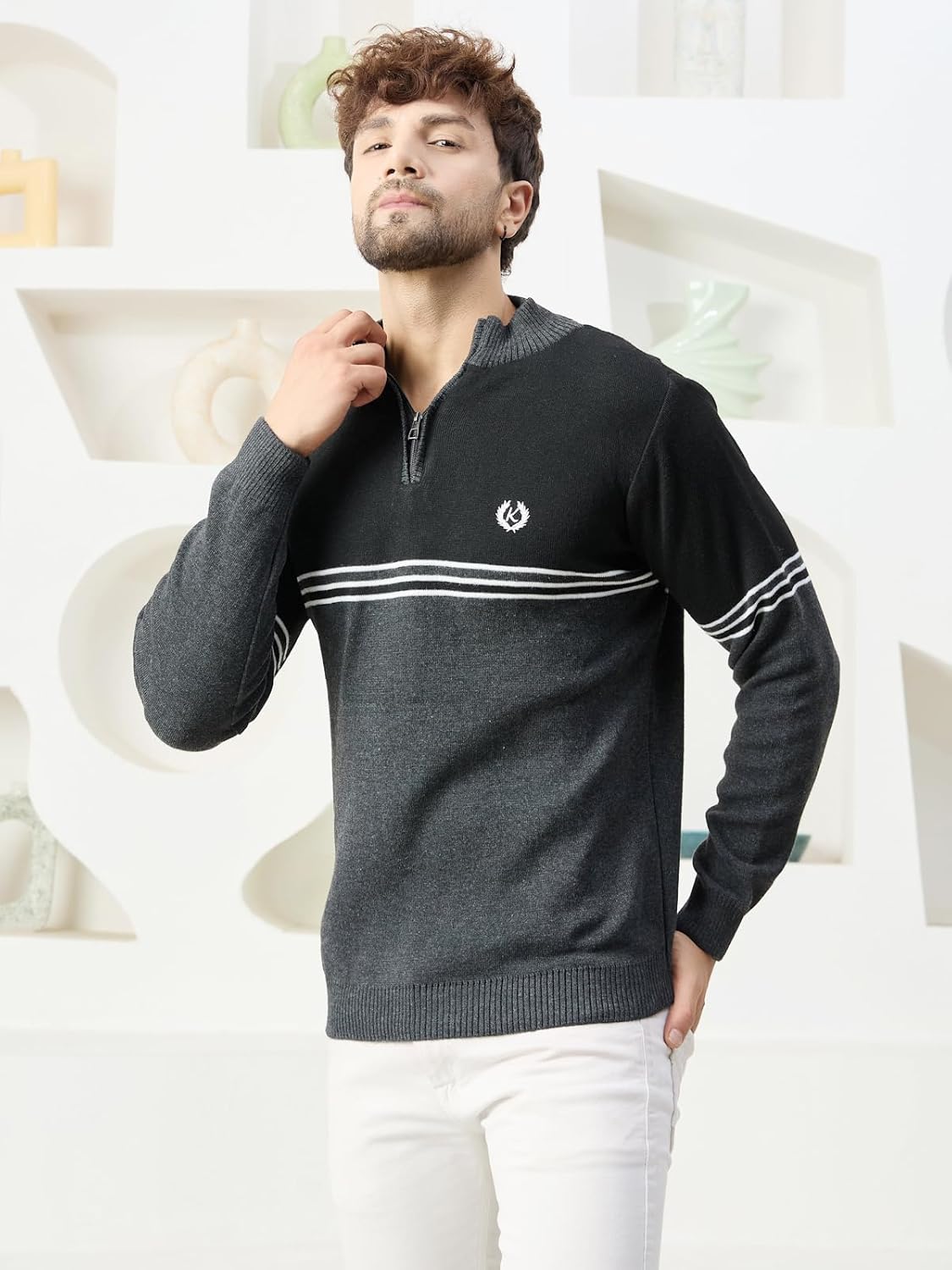 Introducing our stylish and versatile color block zipper high neck pullovers for Men, perfect for any fashion-forward wardrobe! Our color block zipper high neck pullovers feature a bold and eye-catching design, with contrasting colors and patterns that create a unique look. Our pullovers are made of high-quality materials, ensuring both comfort and durability. They feature a convenient zipper closure at the neck, allowing for easy wear and adjustment. They come long-sleeved suitable for any season. The high neck design adds a touch of sophistication and elegance to the overall look. Our color block zipper high neck pullovers can be worn with different bottoms, pants, or jeans, making them versatile for different occasions, from casual wear to formal events.