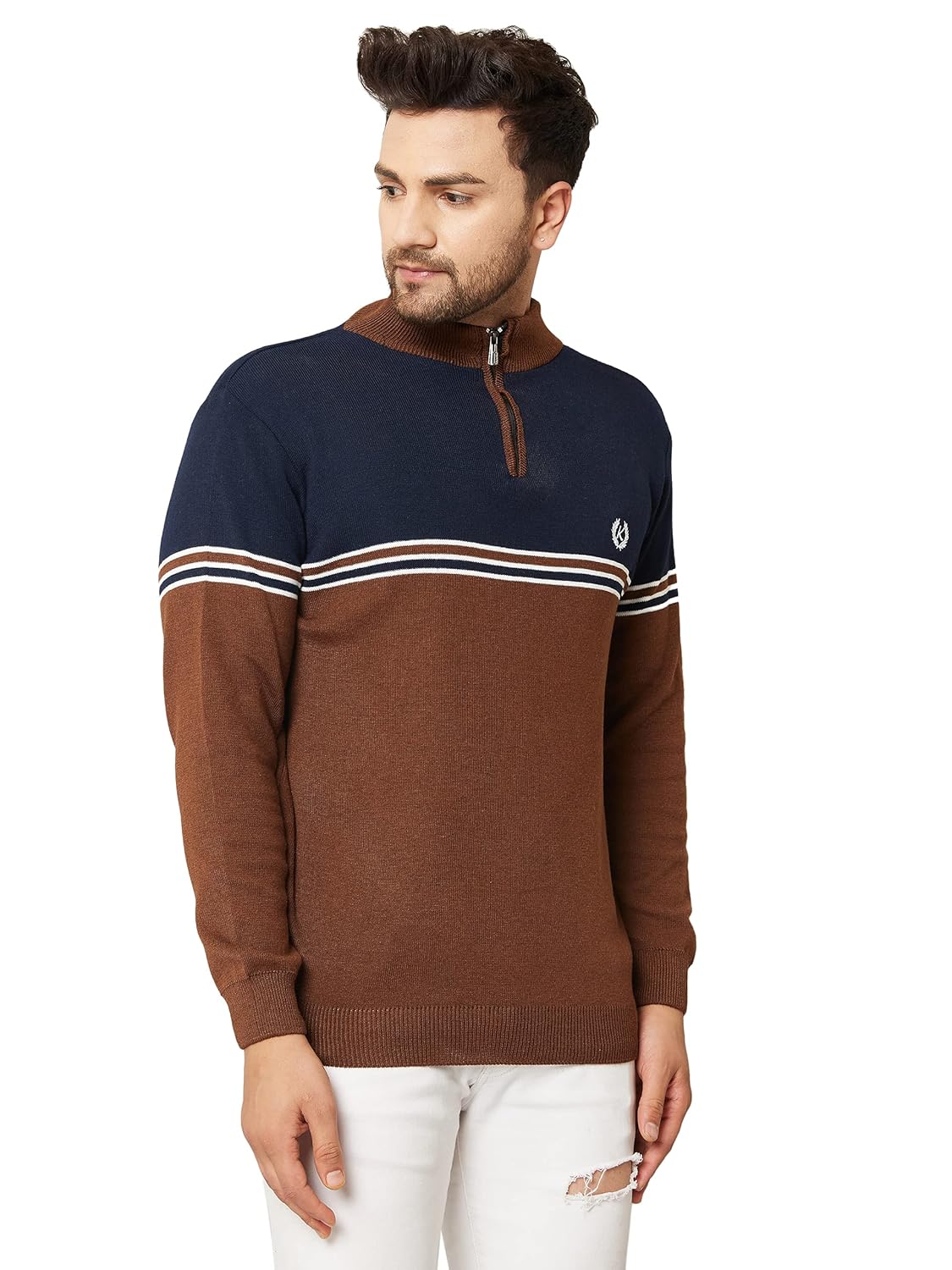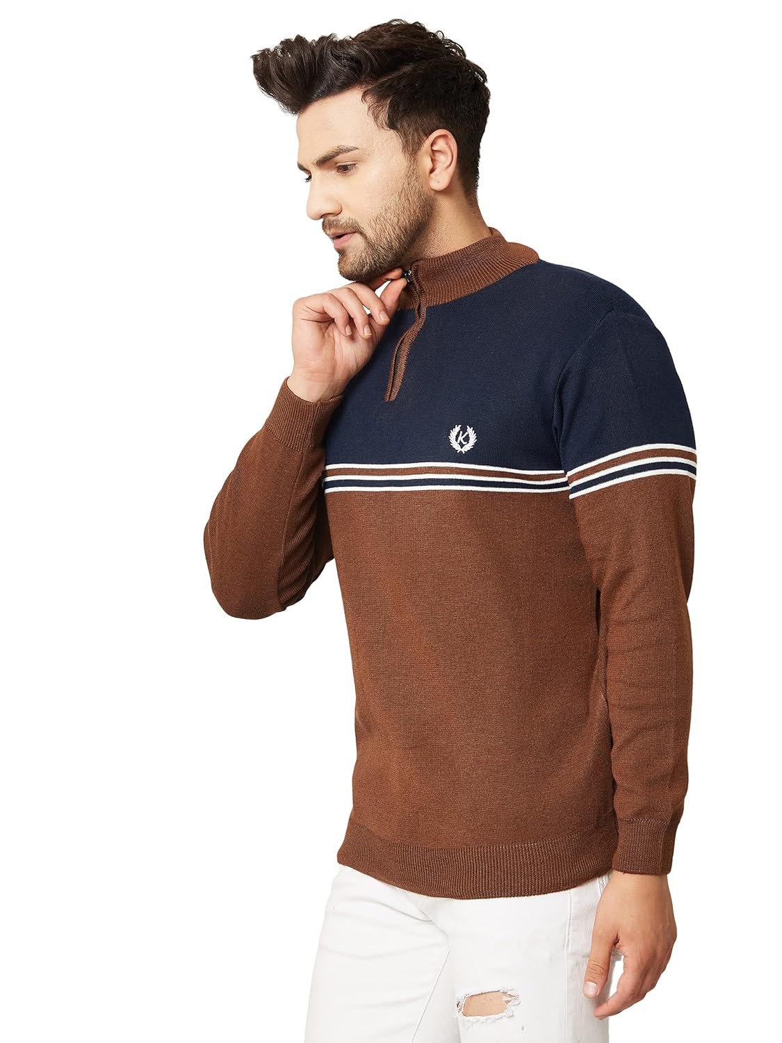 Introducing our stylish and versatile color block zipper high neck pullovers for Men, perfect for any fashion-forward wardrobe! Our color block zipper high neck pullovers feature a bold and eye-catching design, with contrasting colors and patterns that create a unique look. Our pullovers are made of high-quality materials, ensuring both comfort and durability. They feature a convenient zipper closure at the neck, allowing for easy wear and adjustment. They come long-sleeved suitable for any season. The high neck design adds a touch of sophistication and elegance to the overall look. Our color block zipper high neck pullovers can be worn with different bottoms, pants, or jeans, making them versatile for different occasions, from casual wear to formal events.