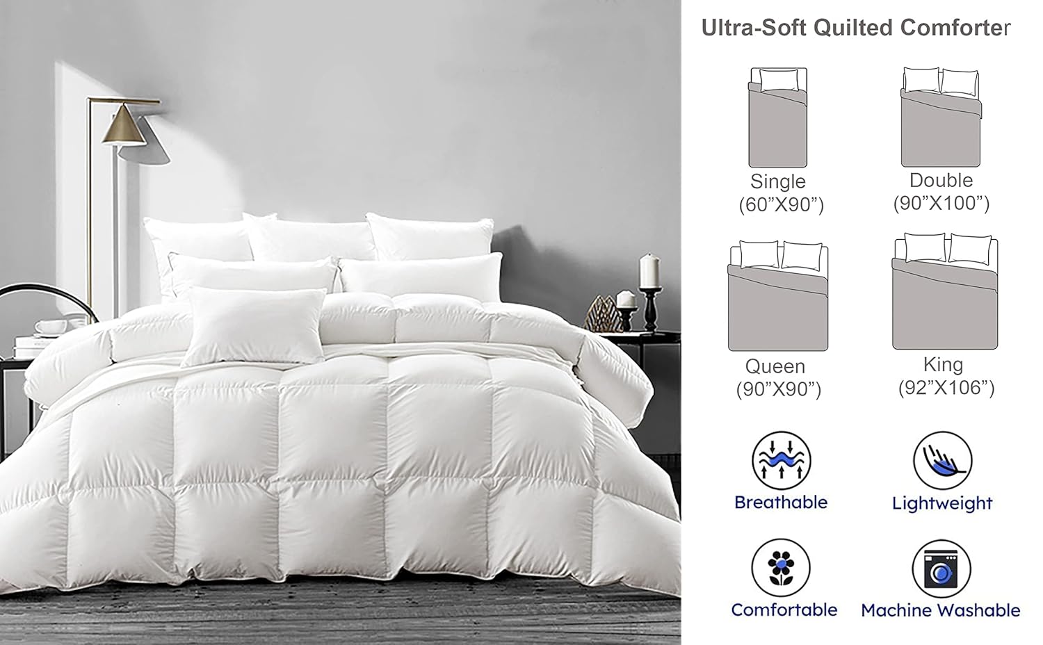 Box stitching pattern makes the comforter long-lasting, hold the fill in place, and prevents lumps from forming over time so that the comforter warms evenly along its length and width.