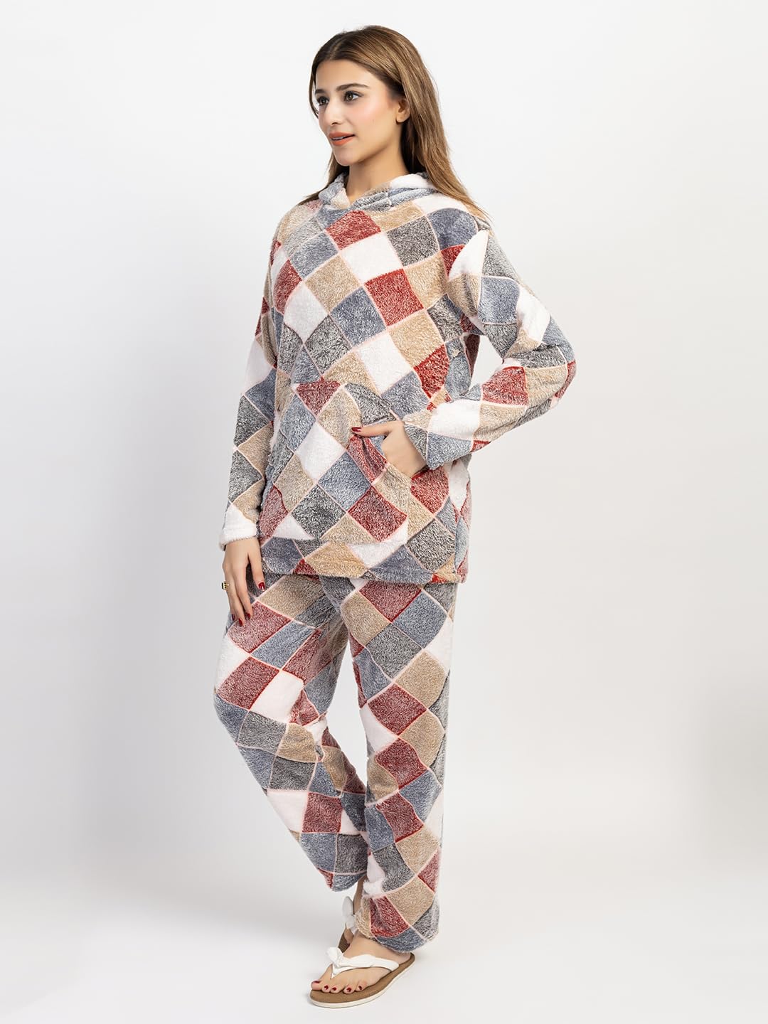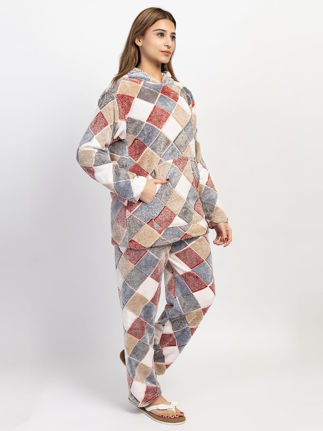 RG BY SS CLOTHING women’s night suit is designed for ultimate Comfortt and breathability, making it perfect for a restful night’s sleep or lounging at home. The set includes a full-sleeve top and full-length pants, crafted from high-quality, breathable wool fabric that feels soft and gentle against the skin. Stay Comforttable and stylish in this winter women’s night suit made from breathable wool. The brown top features a round neck and half sleeves for a relaxed fit, this set is a must-have addition to your sleepwear collection.