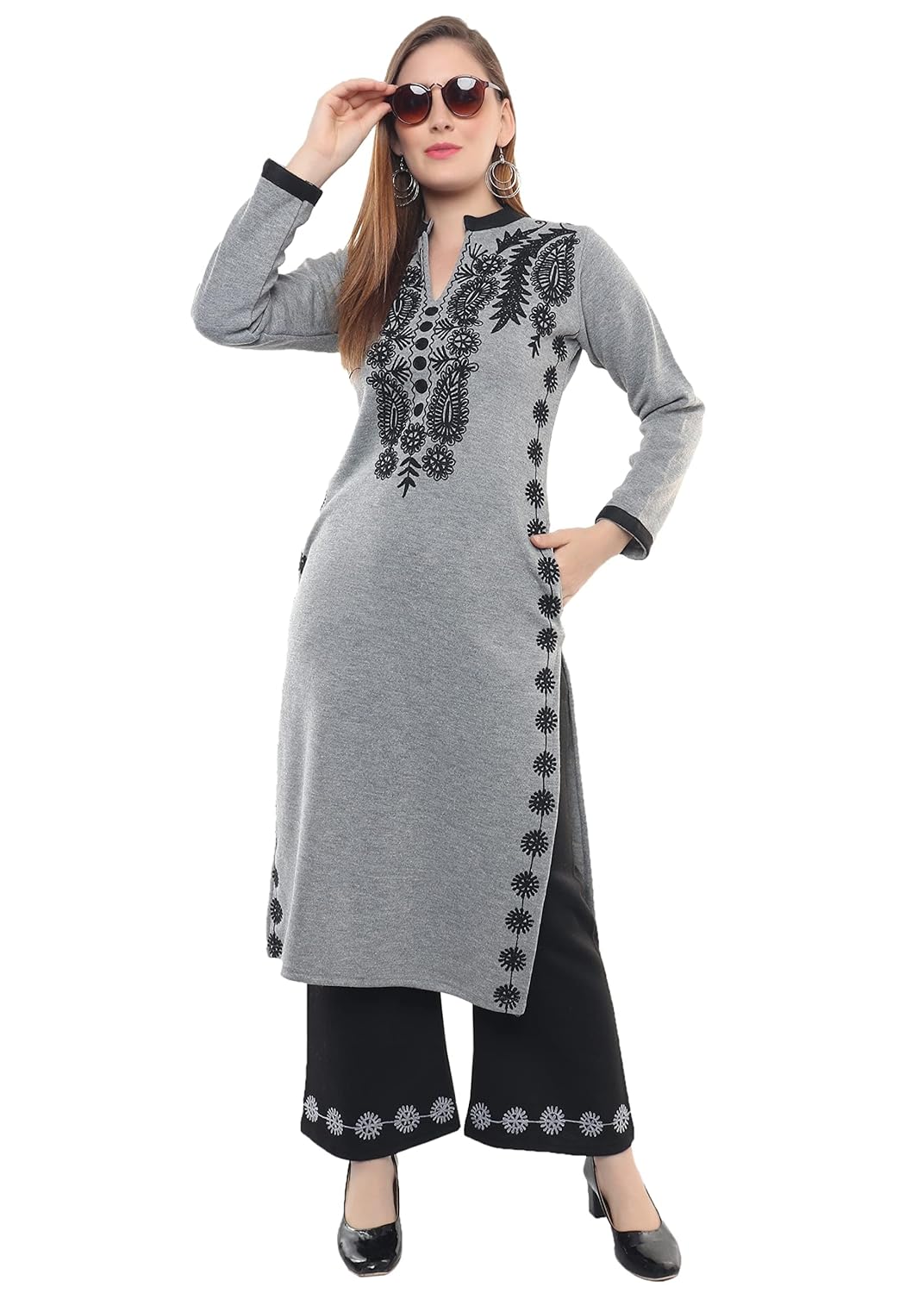 Customers find the kurti set to be of good quality, with one mentioning it’s perfect for formal winter wear. They appreciate its warmth, beauty, and comfort.