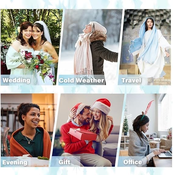 THE DDS STORE Women’s Scarf Pashmina Shawls and Wraps for Evening Dresses Travel Office Winter Wedding for Evening Dresses Large Soft Warm Scarves