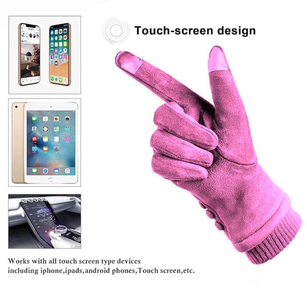 Tomorrow Women’s Winter Gloves – Cold Weather Suede Gloves with Plush Lining, Touchscreen Technology, and Elegant Three-Button Design – Warm and Comfortable Outdoor Gloves