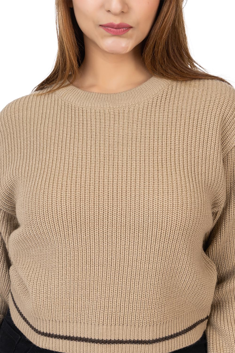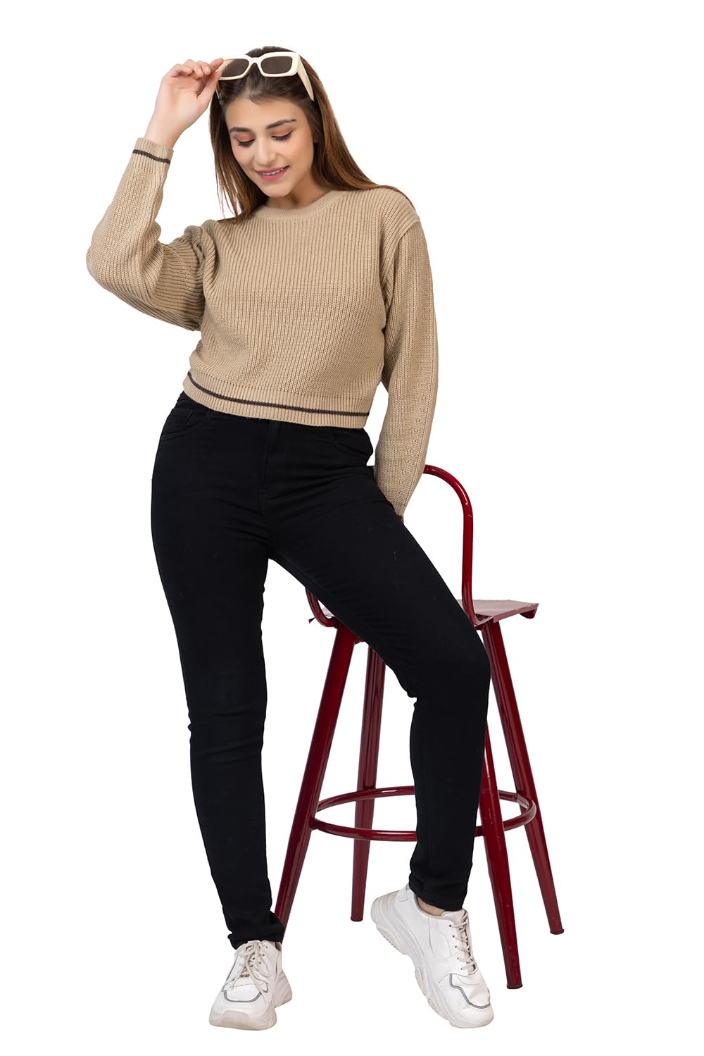 TWENTY ME Semi-Winter Wear Casual Solid Round Neck Full Sleeve Acrylic Wool Women’s Top (6605)