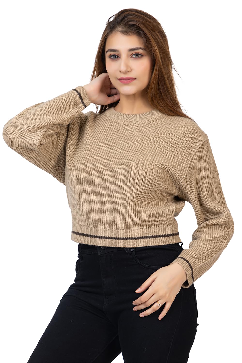 TWENTY ME Semi-Winter Wear Casual Solid Round Neck Full Sleeve Acrylic Wool Women’s Top (6605)