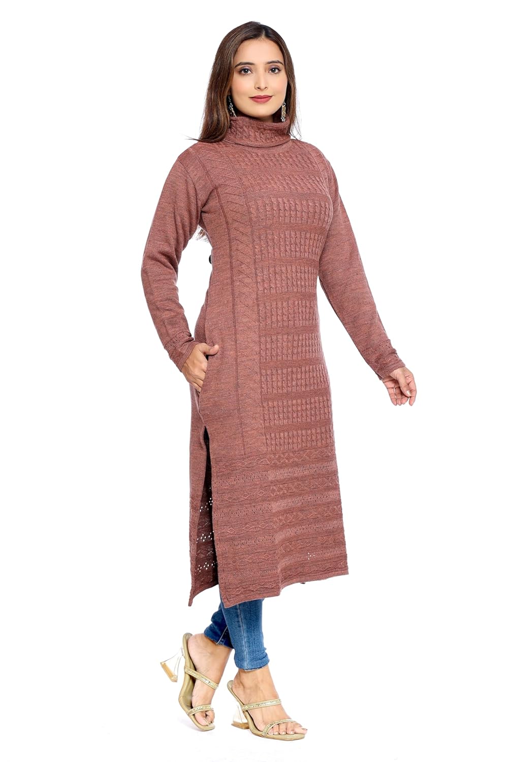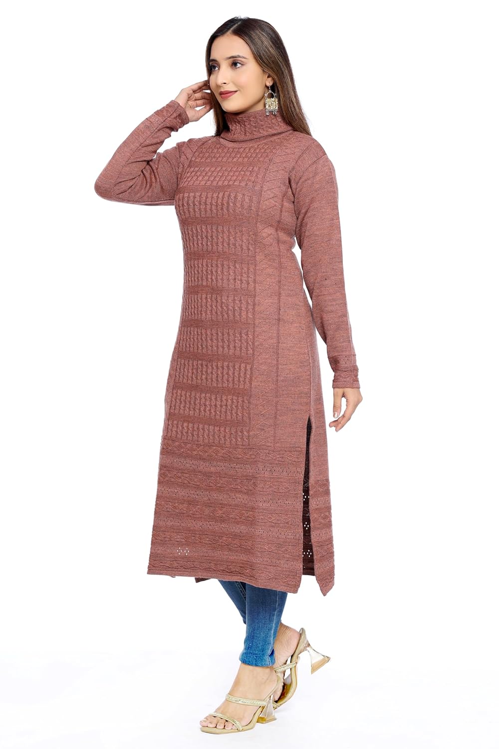 Stylish Design: This vibrant kurti features an intricate knitted pattern with diamond and cable motifs for an eye-catching look. Comfortable Fit: Crafted from a soft, lightweight material, this kurti offers a relaxed yet flattering fit. Versatile Piece: Suitable for casual outings or festive occasions, this kurti can be dressed up or down to suit various settings. Long Sleeves: The full-length sleeves provide coverage while the ribbed cuffs add a touch of texture. Easy Care: This kurti is machine-washable, making it a convenient and low-maintenance addition to your wardrobe.